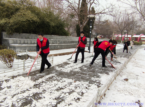 黨支部書記帶領黨員當先鋒、干在前,大家分工協作,配合默契,發揮不怕苦不怕累、樂于奉獻的精神。盡管天氣寒冷,但擋不住大家掃雪的熱情,經過2小時的辛苦努力,積雪結冰的水上公園環湖小路恢復往日模樣,受到了行人、環衛工人的好評。