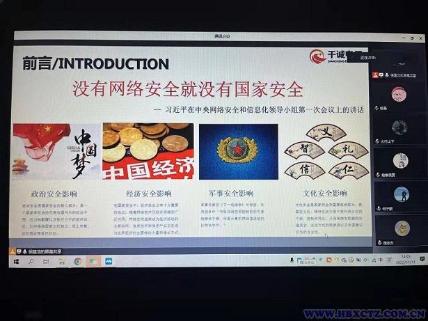 為進一步提升網絡安全防范意識,增強員工網絡安全素養和應對風險能力,11月11日,電子口岸公司組織信息化板塊各公司開展線上《網絡安全威脅應對及網絡安全意識》培訓,特別邀請千城電子高級網絡工程師侯建龍老師線上授課。電子口岸公司、智慧城市公司、信創達公司近40名干部員工參加本次線上網絡安全培訓。