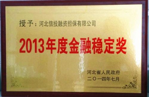 河北信投融資擔保有限公司榮獲2013年度河北省“金融穩定獎”