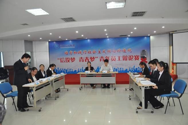為學(xué)習(xí)貫徹十八大精神,扎實(shí)推進(jìn)培育和踐行社會(huì)主義核心價(jià)值觀,弘揚(yáng)主旋律,激發(fā)和傳播正能量,引導(dǎo)廣大青年員工愛崗敬業(yè)、誠信友善,恪守職業(yè)道德和社會(huì)規(guī)范,推動(dòng)青年員工探索真理,樹立正確的價(jià)值觀。針對(duì)目前社會(huì)思想多樣化、價(jià)值多元化、社會(huì)思潮多變化的特點(diǎn),河北信投集團(tuán)結(jié)合公司青年員工多,思想活躍的特點(diǎn),開展以“信投夢? 青春夢”為主題的青年員工辯論賽,豐富廣大青年員工文化生活,提高青年員工的是非判斷能力和團(tuán)隊(duì)的組織協(xié)調(diào)能力,以更加飽滿的熱情推動(dòng)公司科學(xué)快速發(fā)展。